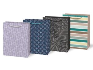 Tka T4 v praktickém formátu je ideální pro středně velké dárky – knihy, kosmetické sady, drobnou elektroniku nebo sladkosti. Tento mix nabízí čtyři stylové geometrické vzory v neutrálních tónech, které ocení nejen muži, ale i milovníci minimalistického designu. Vyrobena je z kvalitního papíru a doplněna pevnými textilními uchy pro snadné a pohodlné přenášení. Skvěle se hodí pro každou příležitost, kde chcete darovat s vkusem. Rozměr: 190 x 250 x 90 mm