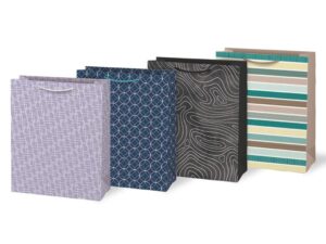 Dárková papírová taška T5 spojuje praktičnost většího formátu s moderním designem, který osloví každého – ať už hledáte elegantní balení pro muže, decentní variantu pro kolegyni, nebo originální způsob, jak zabalit dárek s vkusem. Geometrické a abstraktní vzory v tlumených barvách dodávají tašce sofistikovaný vzhled, který vynikne při každé příležitosti. Pevné provedení s kvalitními uchy zajistí, že i těžší dárek dorazí bezpečně – a stylově. Rozměr: 260 × 320 × 138 mm