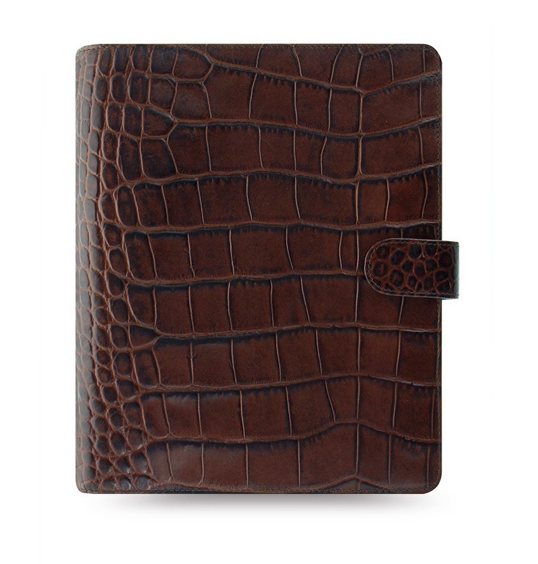 Luxusní diář vyrobený z prvotřídní jemné telecí kůže s krokodýlí texturou. Díky velké vnitřní kapse ho můžete využít také jako peněženku. Obsah: kalendář týden/2 strany ČJ a SJ, krémové rozřazovače 1–6, hnědé pravítko/záložka, seznam úkolů krémový (4 listy), krémové linkované papíry (8 listů), krémové čtverečkované papíry (8 listů), krémové čisté papíry (8 listů), modré linkované papíry (8 listů), zelené linkované papíry (8 listů), růžové linkované papíry (8 listů), krémový adresář (8 listů), průhledná obálka, 9 kapes na karty, 2 vertikální kapsy, elastické poutko na pero, 1 vertikální kapsa, 1 rozšiřitelná kapsa na zip, elastické poutko na pero. Hloubka – 35mm, Šířka – 190mm, Výška – 240mm