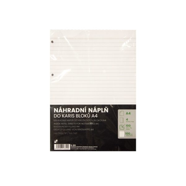náhradní náplň do kroužkových záznamníků, 100 listů
