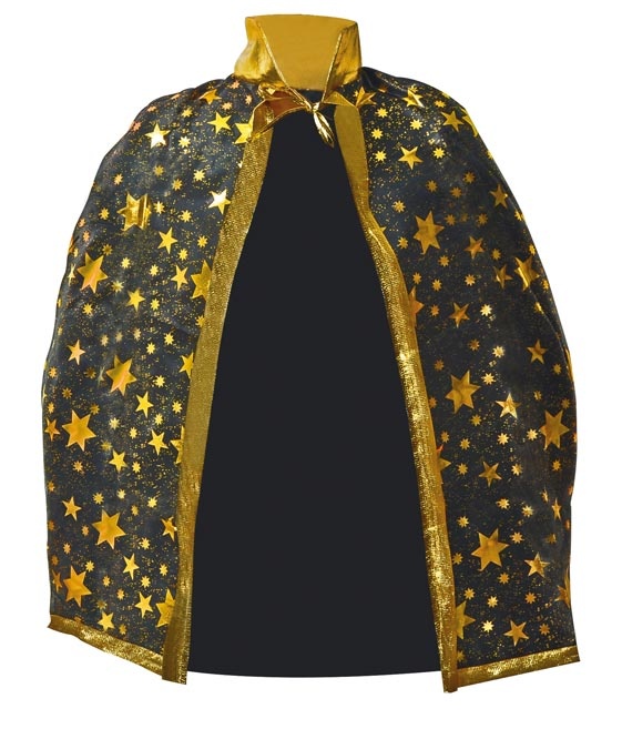 Čarodějnický plášť se zlatými hvězdami.