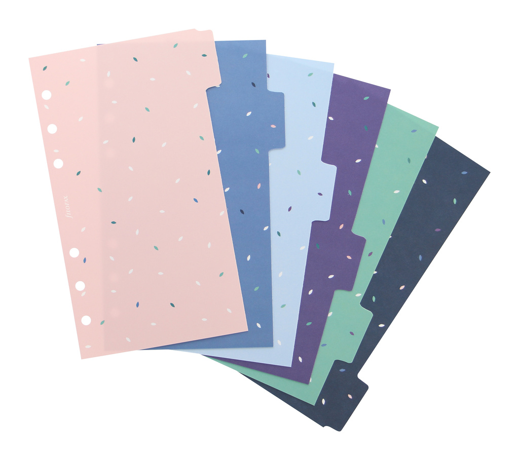 Dodejte svému diáři ještě více elegance díky této barevné sadě šesti odolných plastových rozřazovačů z kolekce Garden. Jsou speciálně navržené pro diáře Filofax nebo Clipbooky ve velikosti Osobní. V sadě najdete rozřazovače s rozmarnými vzory v barvách růžová, modrá, fialová a zelená.